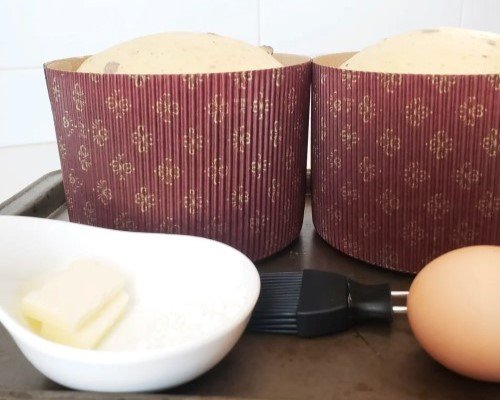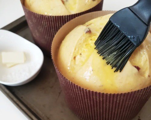 - Turn down the oven to 350°F and bake for ~35-40 min. Rotate the loaves during the last minutes for even browning if necessary. The Panettoni are baked through when the internal temperature meassures 90°C / 194°F.
