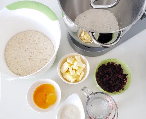 - MAIN DOUGH – 'Mis en place' – means: prep all remaining ingredients ahead of time. That way you have them handy when you need them, including the pre-dough.